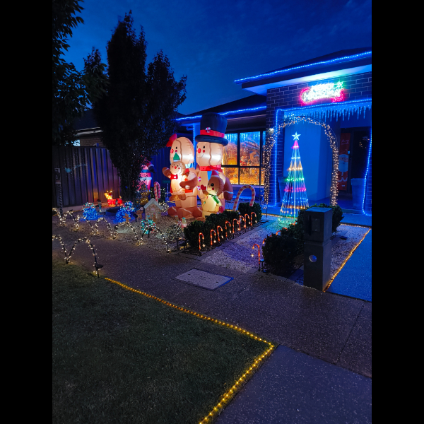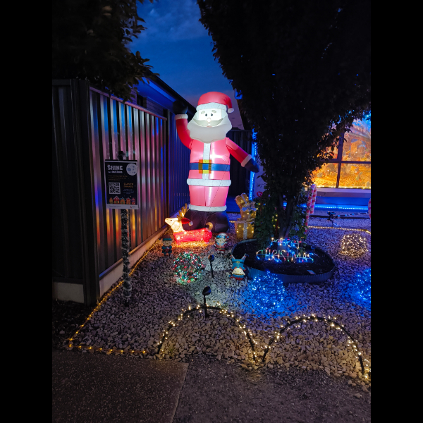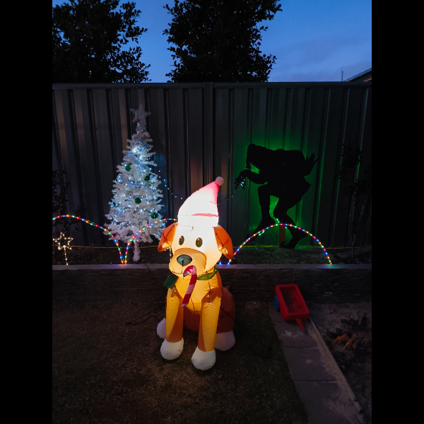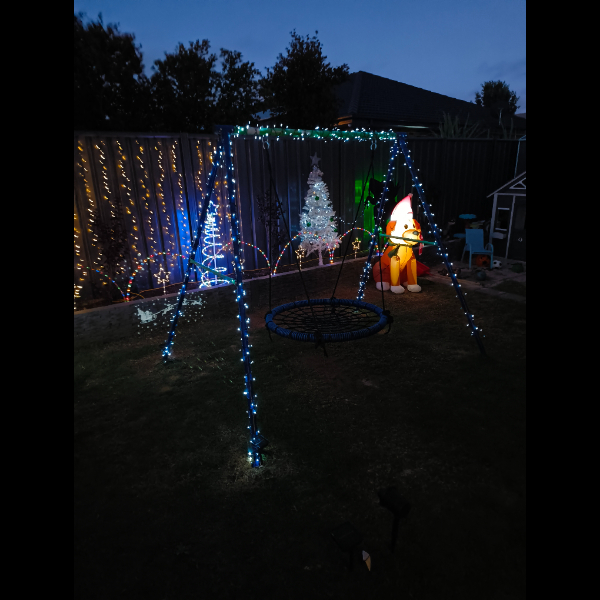 This year Ive also decided to do a small display of lights in our backyard for Abel and Aiden to enjoy without the risk of being near a road. We have some inflatables and heaps of fairy lights, Rainbow arches and meteors on the gutters. Even the Grinch is there trying to steal the lights from our tree. The swing has 1000 lights on it and Abel loved swinging on it as he looked at the rest of the display. We had a lot of happy stims going on while he swung, so I know it has his tick of approval.I’m shining bright for autism