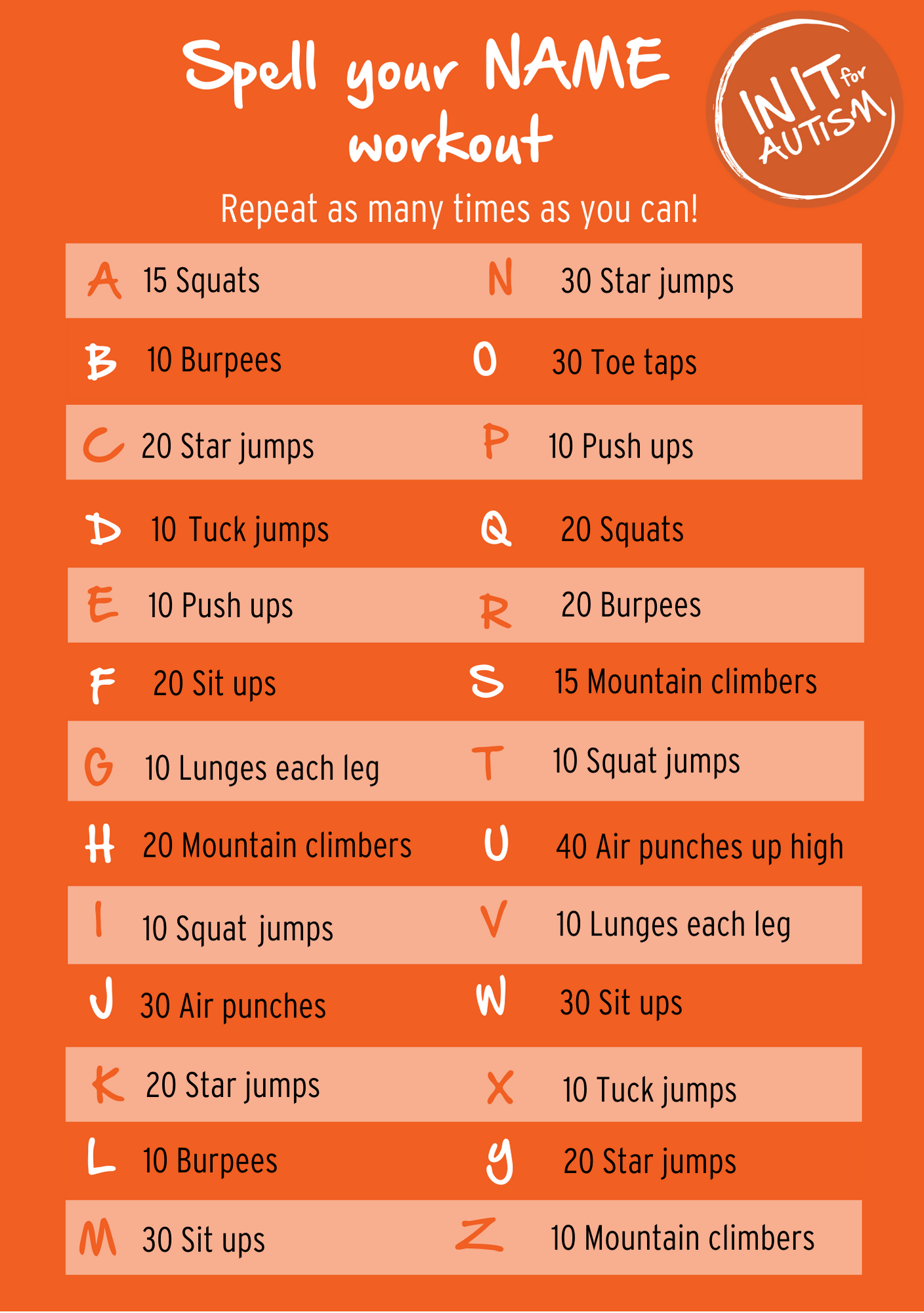 With that in mind, here are some fun ideas to keep you connected and active while supporting IN IT for AUTISM so that no-one on the autism spectrum is left behind.